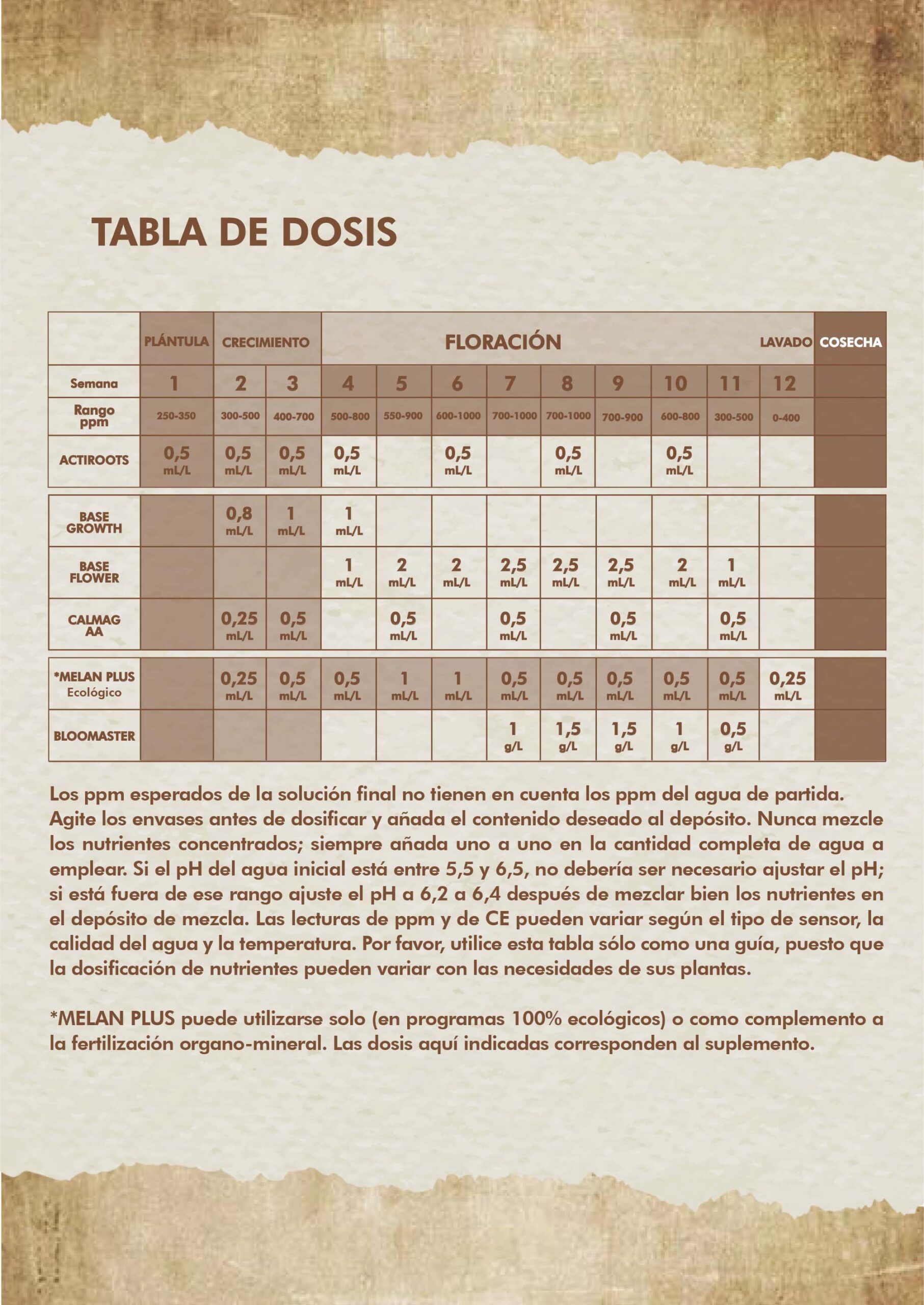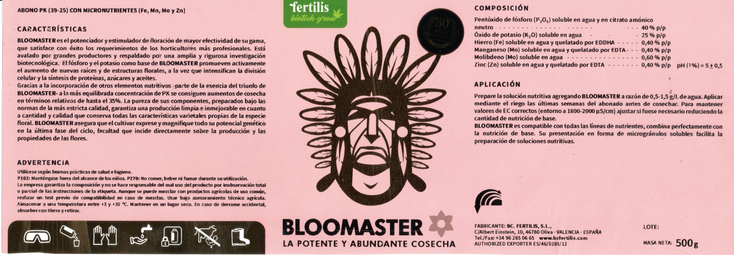 La formulación del fertilizante BLOOMASTER para marihuana se basa en la utilización de fósforo (P) y potasio (K) como nutrientes principales. Los cuales son macroelementos esenciales que juegan un papel crucial en el desarrollo de las plantas durante la fase de floración y maduración. El fósforo es vital para la formación de nuevas raíces y estructuras florales. Por otro lado el potasio intensifica la división celular y la síntesis de proteínas, azúcares y aceites. Estos procesos son fundamentales para el crecimiento, formación de flores grandes y saludables, destacando como valor diferencial la maduración en las últimas fases pre-cosecha. La pureza de los componentes de BLOOMASTER fertilizante para marihuana, y su formulación bajo normas estrictas de calidad aseguran una producción limpia y de alta calidad. Cada lote del producto está fabricado con los más altos estándares y exigencias internas, lo que garantiza que los cultivadores obtengan resultados contrastados y visibles. La concentración equilibrada de fósforo y potasio en BLOOMASTER está ideada para maximizar la absorción y utilización de estos nutrientes por las plantas, lo que se traduce en un aumento significativo de la cosecha. Según estudios y pruebas de campo, los incrementos de cosecha pueden alcanzar hasta un 35% en términos relativos, aumentando también la calidad de los cogollos. Además de fósforo y potasio, BLOOMASTER incorpora micro elementos nutritivos en forma quelatada que complementan su acción, asegurando un suministro estable, completo y equilibrado de nutrientes necesarios. Esta combinación única no solo promueve el desarrollo de flores más grandes y densas, sino que también mejora la salud general de las plantas. De esta manera les permite expresar todo su potencial genético durante la última fase del ciclo de cultivo. El uso del fertilizante BLOOMASTER en las plantas de marihuana garantiza que las plantas desarrollen y maduren flores con características varietales bien definidas. Al mismo tiempo mantiene la pureza y especificidad genética de cada especie. Esto es especialmente importante para los productores que buscan conservar las propiedades únicas y diferentes de sus cultivos, como el perfil de cannabinoides, terpenos y otros compuestos bioactivos. BLOOMASTER contiene, además en su formulación, promotores de la síntesis de metabolitos secundarios que promueven y favorecen la expresión de todas estas características especiales. En la práctica, BLOOMASTER es fácil de aplicar y se integra perfectamente en los habituales de fertilización utilizados. Los horticultores pueden incorporar este estimulador de floración y maduración en su régimen de cuidado de las plantas. De esta manera se aseguran que sus cultivos reciban una nutrición óptima durante las fases finales como un perfecto finalizador. Los resultados son apreciables, con plantas que muestran una gran cantidad de flores, un aumento notable en la producción de biomasa floral y una calidad final excelente de las mismas. BLOOMASTER es un fertilizante esencial que se utiliza como finalizador para los cultivadores de marihuana que buscan maximizar la producción y calidad de sus cosechas. Su formulación avanzada y equilibrada esta respaldada por una rigurosa investigación y avalada por grandes productores. Por lo que asegura que las plantas obtengan el máximo de su potencial, resultando en cosechas abundantes, de alta calidad y con las mejores características de cada variedad. Con BLOOMASTER, los cultivadores pueden estar seguros de que están utilizando uno de los mejores estimuladores de floración y maduración disponibles en el mercado.